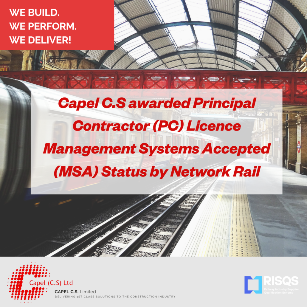 Capel C.S awarded Principal Contractor (PC) Licence Management Systems Accepted (MSA) Status by Network Rail